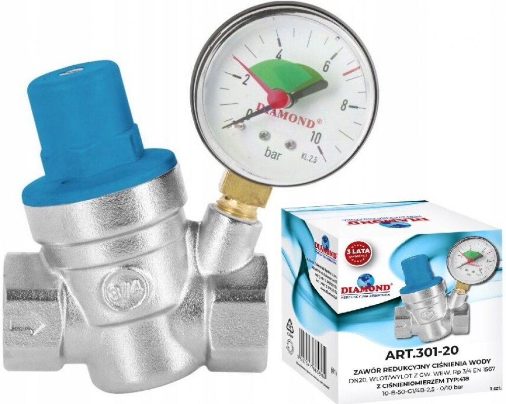 REDUKTOR TLAKU VODY S MANOMETREM 3/4'' DN20 REGULÁTOR 1-6 BAR