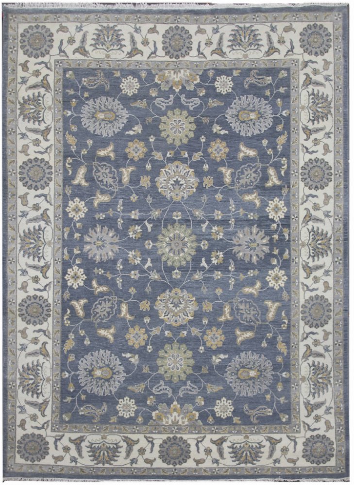 Ručně vázaný kusový koberec Diamond DC-ZIGLER Jeans blue/ivory je kombinací slonovinové a modré. Jeho vzorování je ve stylu tradičních orientálních vzorů.