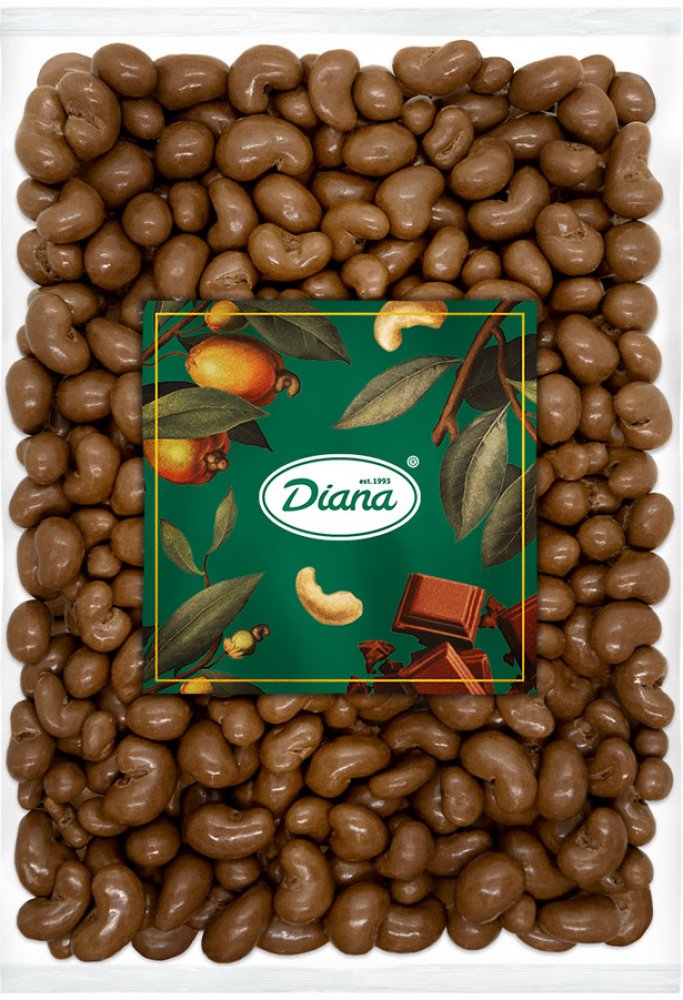Diana Company Kešu v polevě z mléčné čokolády 1000 g Spojení kešu ořechů a mléčné čokolády přináší lahodnou chuť. To ale není všechno. Ořechy kešu jsou výborným zdrojem bílkovin. Pro svůj obsah blahodárných látek jsou kešu ořechy oblíbené u příznivců zdravé výživy.