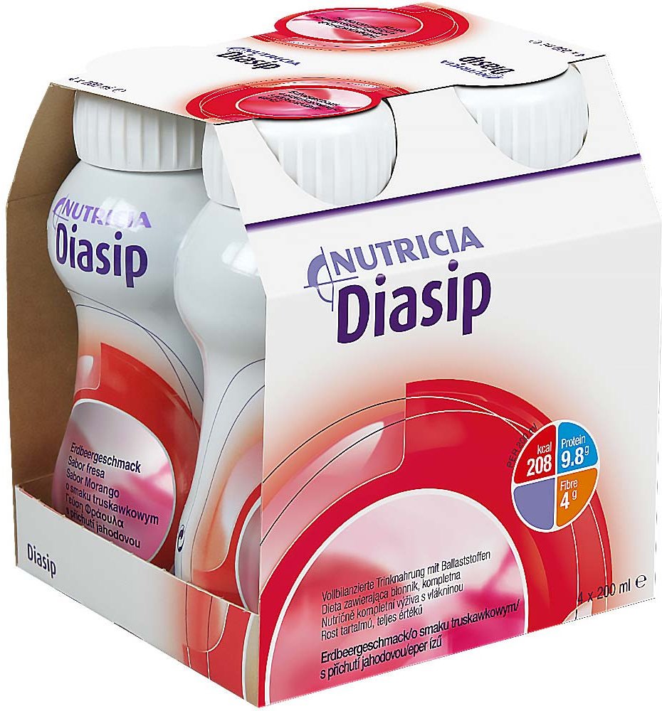 Diasip je potravina pro zvláštní lékařské účely – potravina pro zvláštní výživu. Je vhodný jako náhrada části stravy nebo jako jediný zdroj výživy v případě, kdy pokrytí výživových potřeb pacienta nelze dosáhnout běžnou stravou. Používá se na základě doporučení lékaře nebo osoby kvalifikované v oblasti výživy lidí, farmacie nebo péče o matku a dítě. Není určeno pro děti do tří let. Opatrnosti je třeba u dětí od 3 do 6 let věku. Nevhodné pro pacienty vyžadující bezvlákninovou dietu a paciety s galaktosémií a fruktosémií.