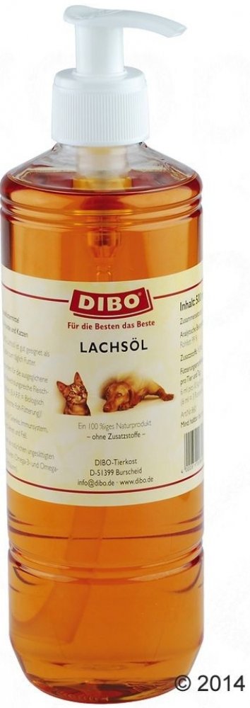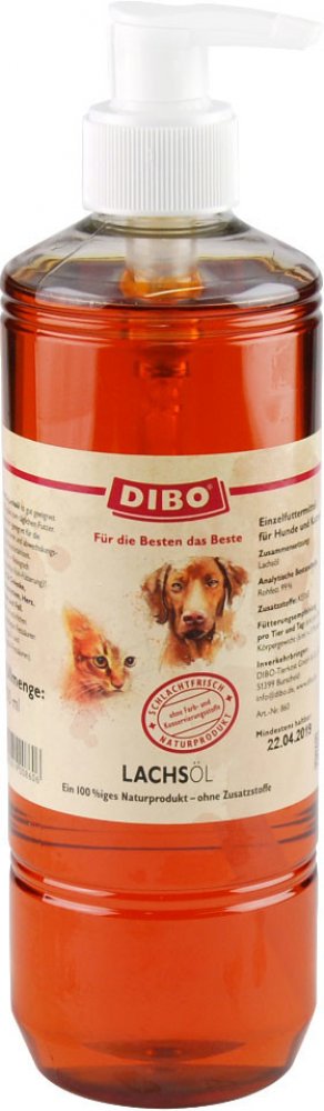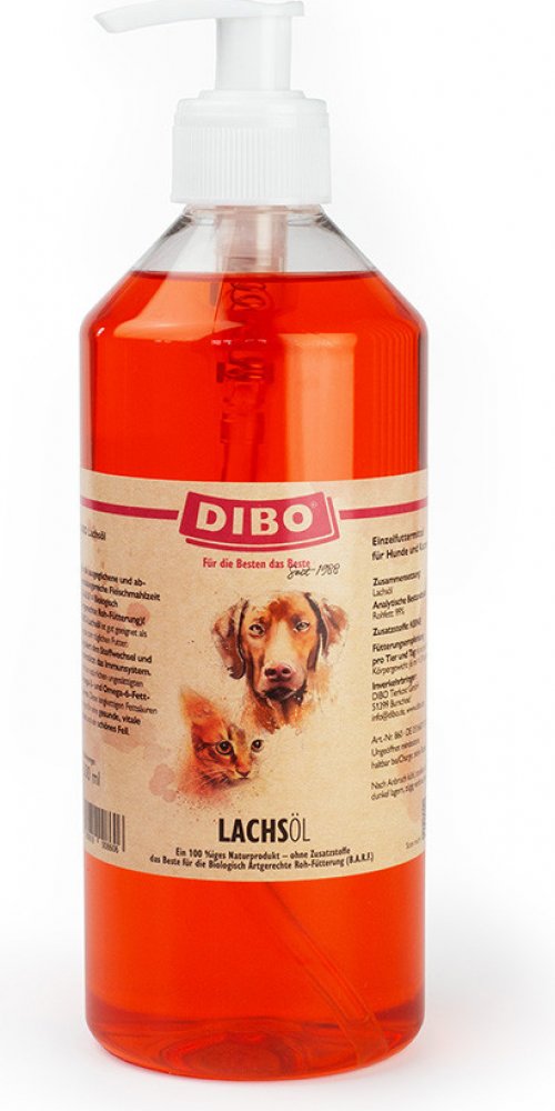 Lososový olej obsahuje esenciální polynenasycené omega-3 a -6 mastné kyseliny ve velkém množství. Omega-3 esenciální kyseliny jsou známé pro své účinky, jako je podpora vývoje a funkce orgánů. Pozitivní účinky lososového oleje se projevují zejména lepším zdravím kloubů, silným imunitním systémem, zdravím srdce a cév, stejně jako kůže a srsti. Užívání lososového oleje může pomoci zmírnit příznaky onemocnění kůže, kardiovaskulárního onemocnění, infekcí, alergií či zrychlit hojení ran. Většina krmiv neobsahuje dostatečné množství omega-3 a -6 mastných kyselin, proto je vhodné doplňovat běžnou stravu lososovým olejem. Olej Dibo je vhodný také při krmení BARF (syrové maso). Lisuje se ze studena, to znamená že nejsou poškozeny cenné mastné kyseliny, a neobsahuje žádné další suroviny. Pro jednoduché a rychle dávkování obsahuje praktické balení dávkovač. Dibo lososový olej v přehledu: Doplněk k běžné stravy pro psy i kočky Vhodné při krmení BARF (syrové maso) Bez dalších příměsí - 100% přírodní Posiluje funkce orgánů Ulevuje od příznaků onemocnění, infekcí a alergií Pomáhá zlepšovat kvalitu srsti a zdraví kůže Šetrně lisován za studena - zůstávají zachovány cenné esenciální kyseliny Praktická pumpička pro snadné dávkování