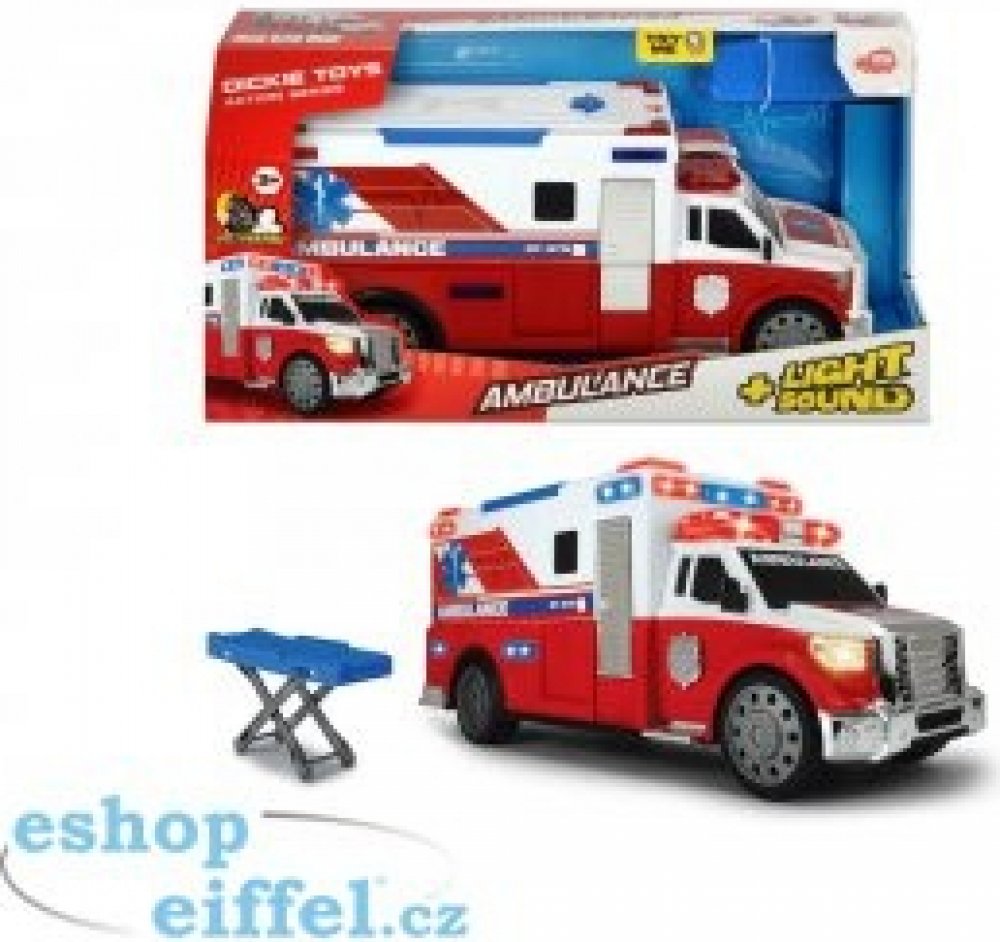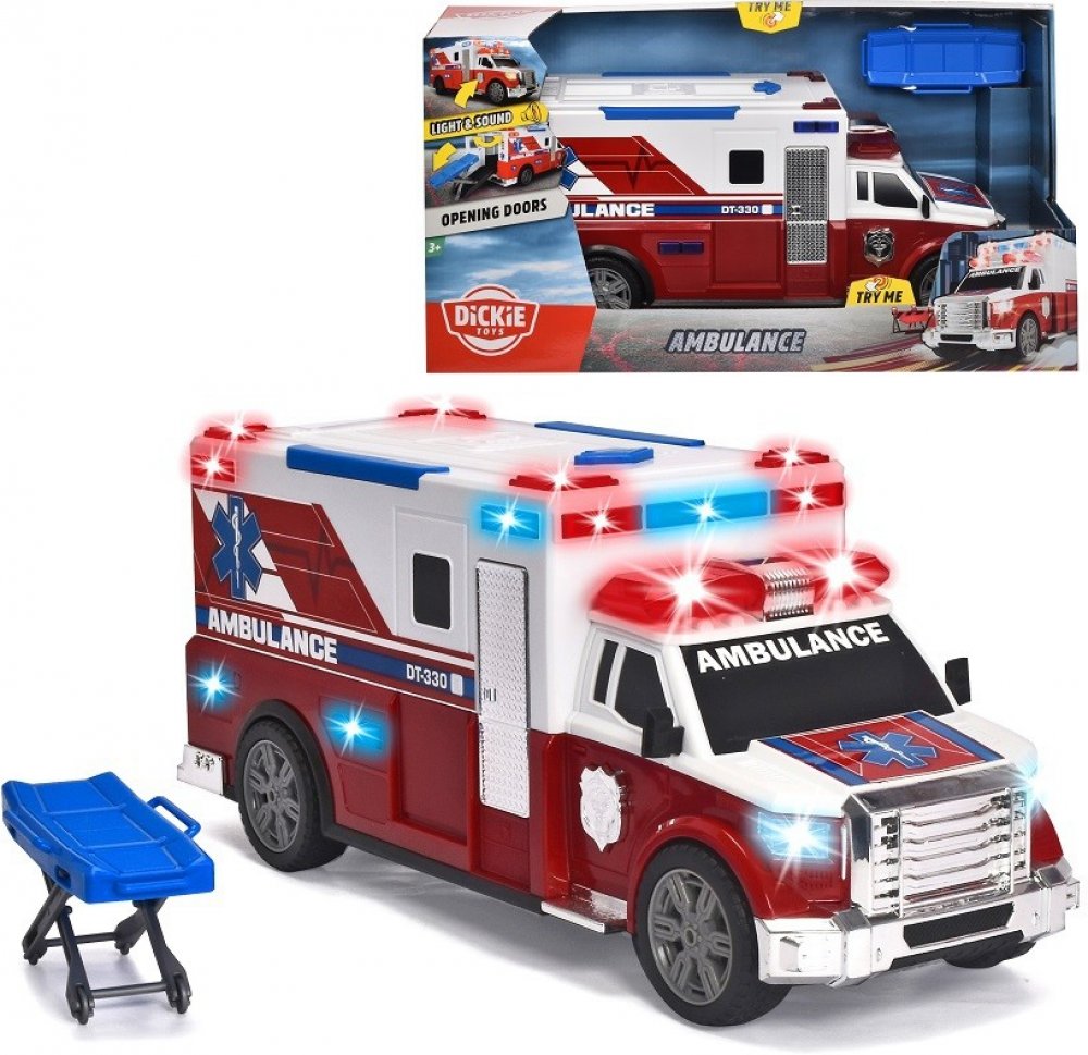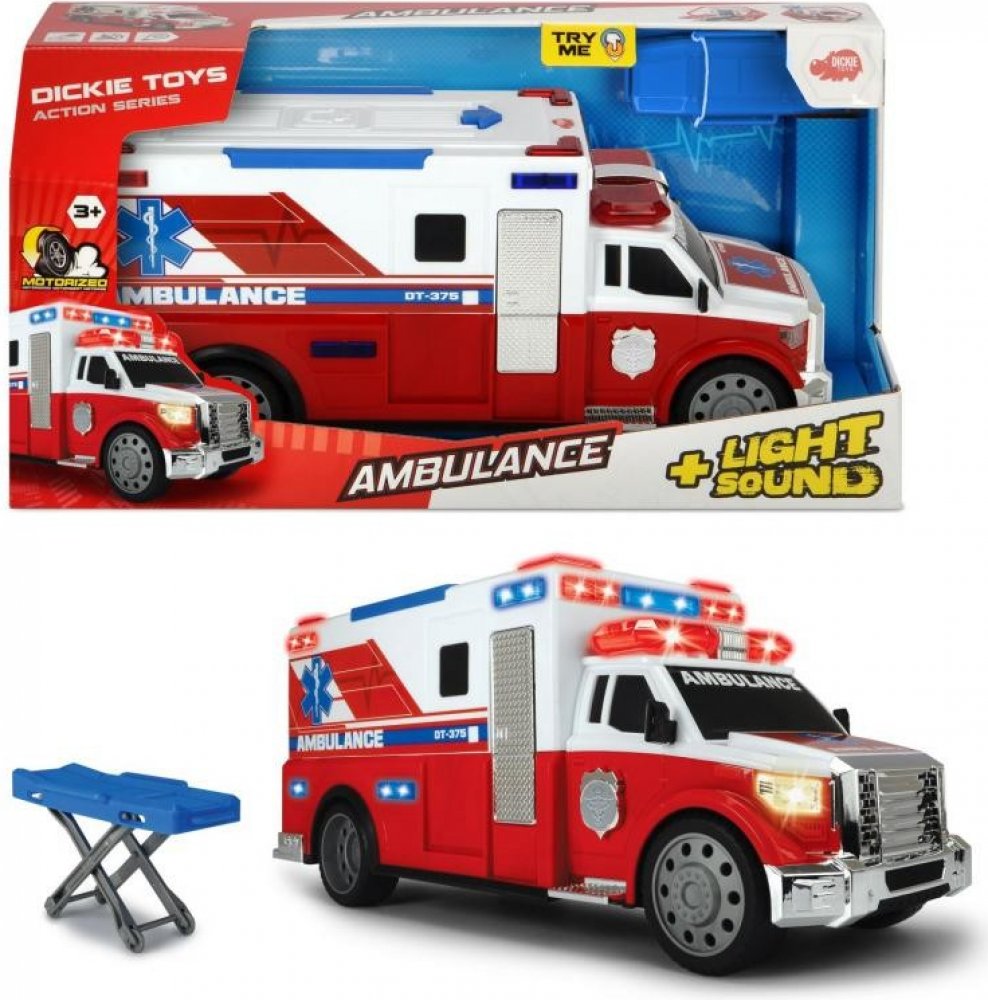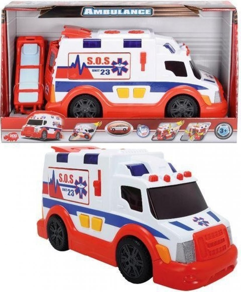 Toto auto ambulance je s motorizovaným pohybem vpřed. Zaujme každé malé dítě, které chce pomáhat nemocným pacientům. Nosítka pro pacienty jsou součástí balení. Auto má otevírací zadní dveře. Délka auta je 33 cm. Součástí jsou nosítka. Světelné a zvukové efekty. Otevírací zadní dveře. Jsou potřeba baterie 2 x AA. Vhodné pro děti od 3 let.