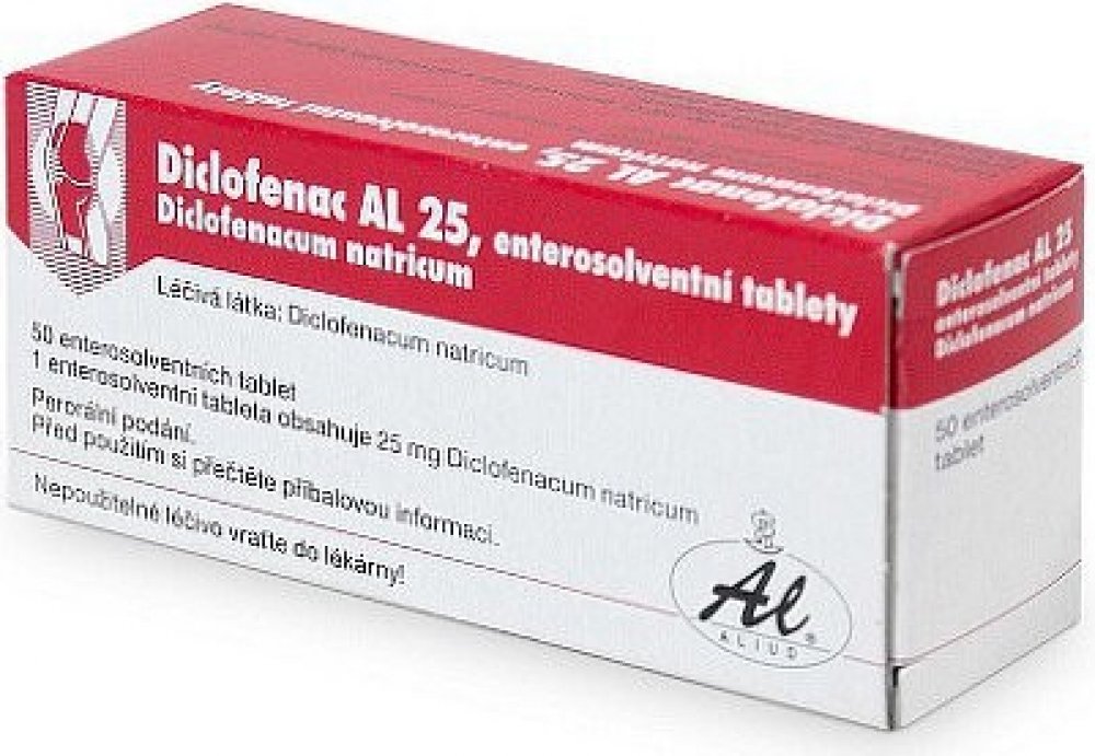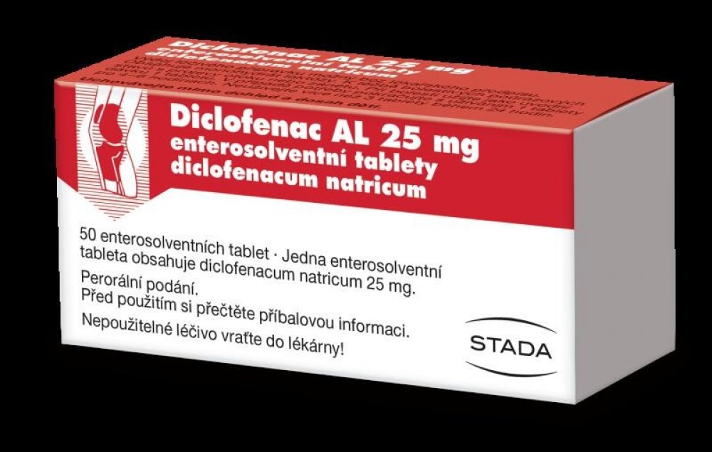 Léčivá látka je Diclofenacum natricum 25 mg v jedné enterosolventní tabletě.
