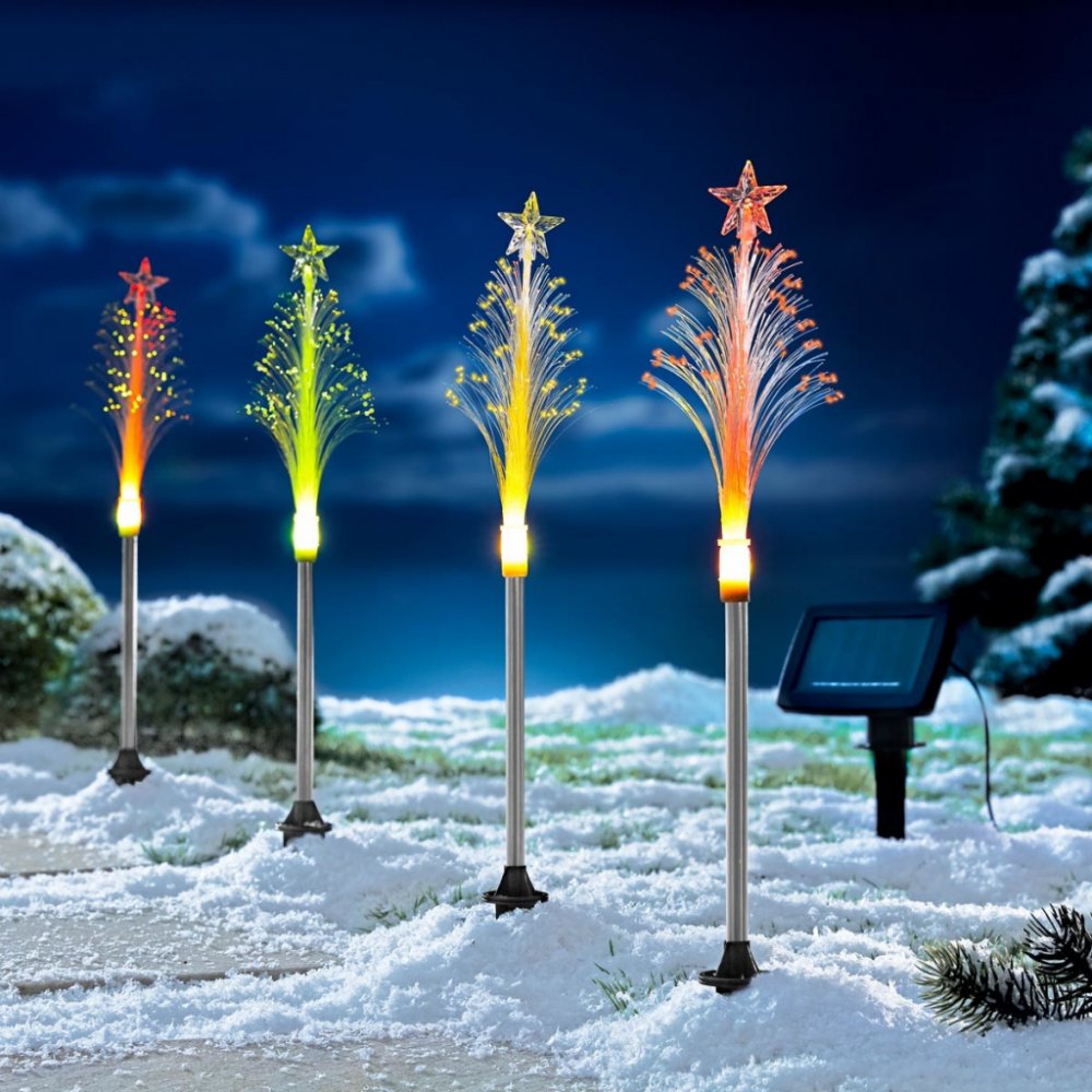 Nalaďte svou zahradu na vánoční náladu s touto pestrou hrou barev – originálními solárními stromečky s hvězdičkou na vrcholu.