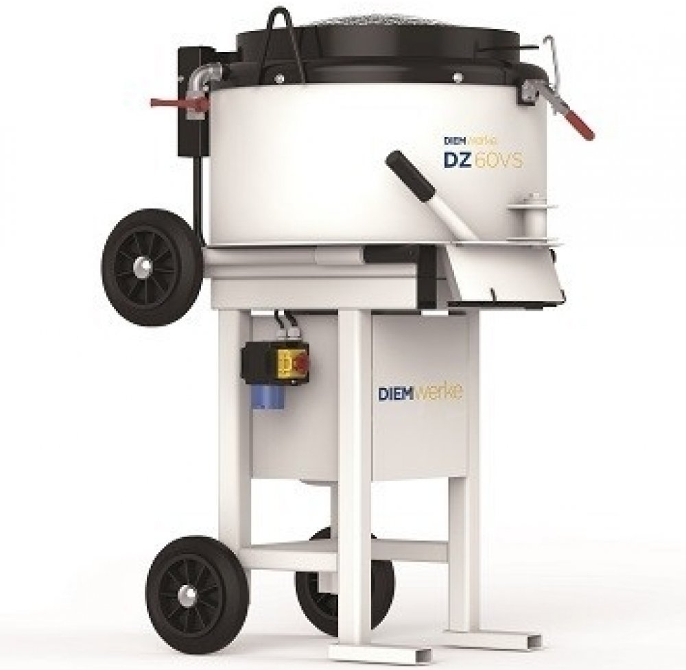 Stavební míchačka s nuceným oběhem DIEM DZ 60VS mobilní. Stavební míchačky DIEM se vyznačují vysokým výkonem, robustní konstrukcí, spolehlivostí, snadným ovládáním a dlouhou životností. Jsou určeny pro profesionální použití, pro míchání speciálních směsí (štuky, omítky, lepidla, malta, vápno a ochranné směsi z umělých hmot, rychle tuhnoucích směsí atd.).