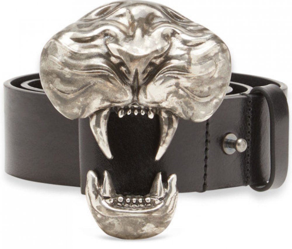 Kožený opasek z přehlídky FALL WINTER 2024 RUNWAY SHOW zdobený jedinečnou kovovou sponou ve tvaru vyceněné čelisti leoparda. Ideální šířka 4 cm a maximálně pohodlné zapínání zaručují všestranné využití pro všechna pohlaví. Hladká hovězí useň prémiové kvality se vyznačuje mimořádnou pevností a odolností. Dokonale nápaditý doplněk, který dodá nezaměnitelně stylový vzhled vašemu outfitu.