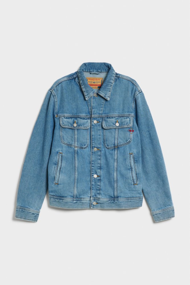 Trucker bunda. Rovný regular střih. Jemně zdobena červeným vyšívaným logem písmene ,,D" umístěným na kapse. Pevná džínovina přináší autentický vzhled díky lehce ošetřenému, středně modrému odstínu. Zapínání na knoflíky. Čtyři kapsy. Manžety a regulace pasu na knoflíky. Velikost odpovídá běžnému značení, při výběru zvolte své obvyklé číslo.