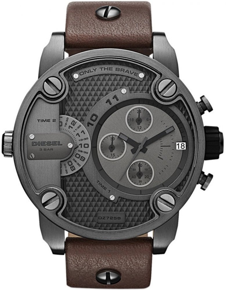 Diesel analogové kůže ocel 51 x 60 x 13 mm 30 m bateriové 120 g minerální sportovní pánské bateriové - quartz bez osazení Little Daddy kulaté hnědá černá na přezku