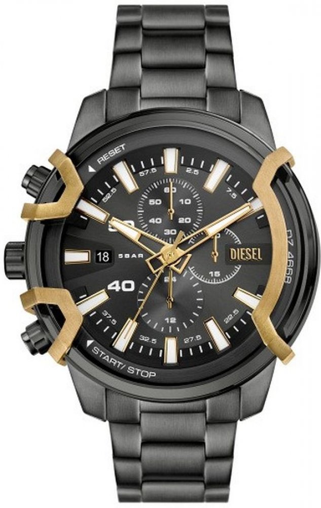 Diesel DZ4668 ZÁKLADNÍ PARAMETRY: Určení: Pánské Pouzdro:Z ušlechtilé oceli Řemínek:Z ušlechtilé oceli Sklo:Tvrzené minerální Ciferník: Černý Vodotěsnost:5atm šířka ciferníku: 48 mm výška ciferníku: 13 mm FUNKCE: Datum Stopky Čas: analogové zobrazení Napájení QUARTZ: životnost baterie cca 2 roky Záruka: 2 roky S hodinkami je dodáváno originální příslušenství, včetně boxu, instrukcí a originalního bookletu značky.Značka Diesel Značka Diesel si za léta působení na celosvětovém trhu vybudovala reputaci odvážné nadčasové módy. Neotřelé kombinace stylů a barev, stylizace bez zábran, jasný rukopis a trendy s časovým předstihem servíruje svým zákazníkům rok co rok. Nastavila vysokou laťku všem značkám určeným mladé generaci. Nevyčerpatelná studnice nápadů, která dokáže vždy překvapit něčím novým, taková je italská firma Diesel. Extravagance v tradičním Diesel stylu , dokáže provokovat a šokovat, ale stejně tak se rázem dokáže změnit v decentnost, rafinovanou nesmělost a důraznost v jemných detailech. Modní značku Diesel reprezentují nejen hodinky, ale také parfémy.