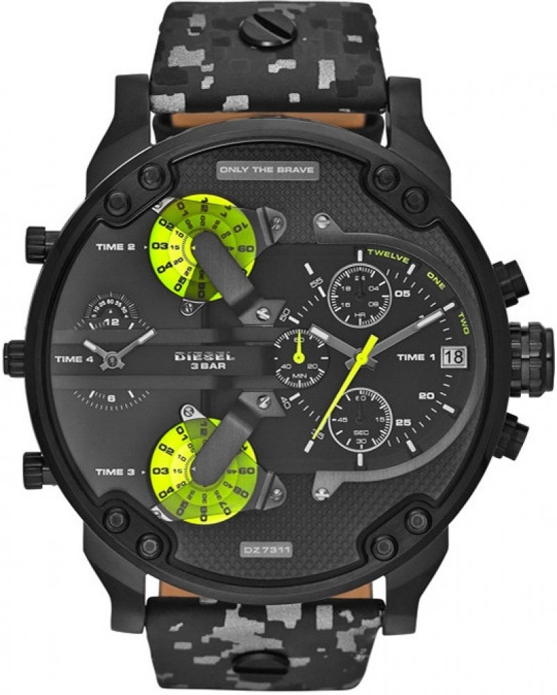 Diesel analogové kůže ocel 57 x 57 x 13 mm 30 m bateriové 145 g minerální sportovní pánské 21 cm bateriové - quartz bez osazení Mr Daddy kulaté černá černá na přezku 2.3 cm