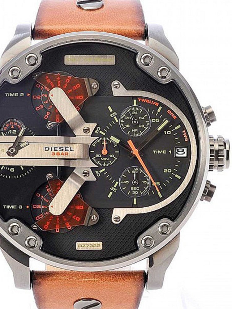 Diesel analogové kůže sportovní pánské bateriové - quartz pro běžné použití (30–50 m) 57 mm ocel 57 x 57 x 15 mm 30 m bateriové 140 g minerální bez osazení Mr Daddy kulaté hnědá černá s luminiscencí trnová spona 2.8 cm na ruku stříbrná ocel 5.7 cm velké pevná ocel 15.0 mm 15 mm 57.0 mm s dočasným svícením (luminiscence/LED) bez chytrých funkcí