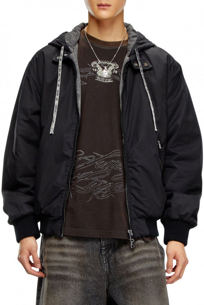 Pánská bunda v bomber stylu. Volný střih do pasu. Vyrobená z hladké syntetické tkaniny. Vyšší límec u krku zajišťuje ochranu před chladem. Kapuce se stahovací šňůrkou poskytuje ochranu proti větru a dešti. Zapínání na zip. Rukávy a spodní okraj zakončené pružnými žebrovanými lemy pro ochranu před nepříznivými povětrnostními podmínkami. Dvě praktické boční kapsy se zapínáním na zip. Doplněna vnitřn...