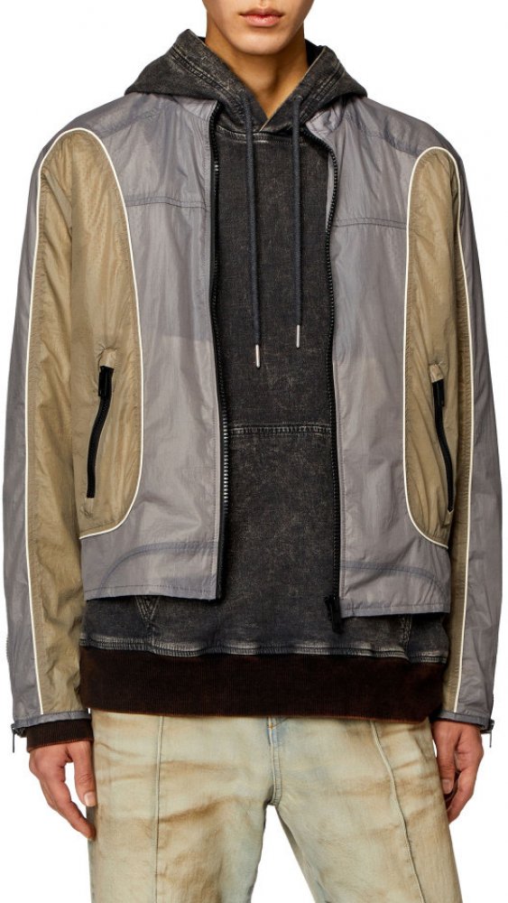 Pánská bunda se stojáčkem. Vyrobena z lehkého technického ripstop nylonu. Regular rovný volný střih. Design inspirovaný motokrosovým stylem je doplněn detailem ergonomického lemování a kontrastními barevnými bloky, které propůjčují modelu sportovní vzhled. Opatřena podšívkou pro hladké oblékání. Kapsy a manžety na zip. Model má na sobě IT velikost 48 a měří 188 cm. Velikost odpovídá běžnému značen...