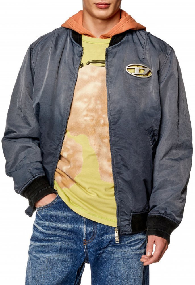 Pánská bunda ve stylu bomber. Oversize střih do pasu. Design se vyznačuje decentním vyblednutím a jemnými ošoupanými úpravami pro obnošený efekt. Vyrobena z lehkého nylonu s polstrovanou prošívanou podšívkou. Hardware s vyříznutým logem ve tvaru oválného písmene ,,D" přidává nečekaný průhled. Dvě boční kapsy. Zapínání na dvoucestný zip. Žebrované pružné manžety a lem. Model má na sobě IT velikost ...