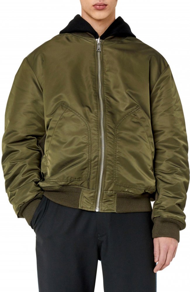 Pánský prošívaný bomber. Typický regular střih zúžený v pase. Doplněný pletenými panely na zadních stranách rukávu. Levou přední kapsu zdobí detail tonálního loga ve tvaru oválného písmene ,,D". Odpovídá běžnému značení velikosti, při výběru zvolte svou obvyklou velikost. Model má na sobě IT velikost 48 a měří 188 cm.