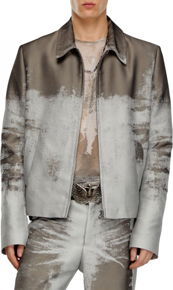 Exkluzivní pánská bunda s límcem. Volný střih, délka do pasu, zapínání na dvoucestný zip. Dvě prostorné boční kapsy, důmyslné prošívání. Jednobarevné provedení ošetřené speciální metodou devoré, která zajišťuje prošití po celé délce. Ušito z bavlny a syntetických vláken. Bunda je příjemně měkká na dotek, během nošení prodyšná, zároveň velmi pohodlná a fashion. Jedinečný kousek s nadčasovým vzhlede...