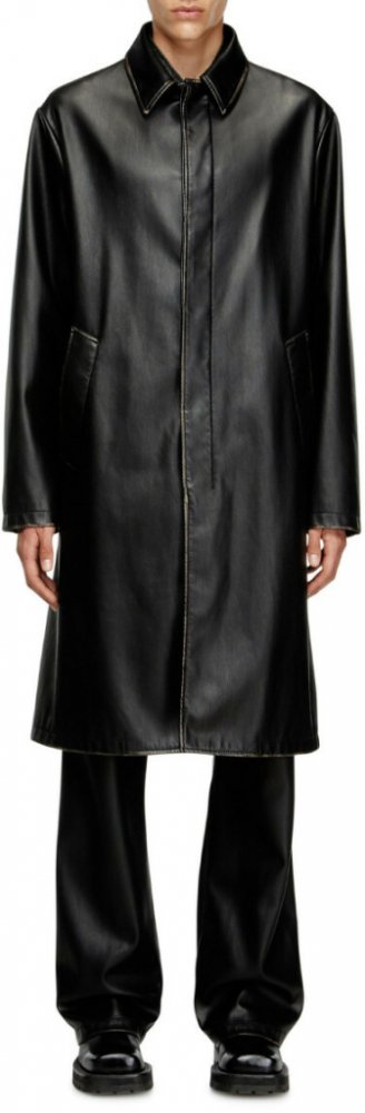 Elegantní černý pánský kabát. Regular rovný volný střih s délkou ke kolenům. Materiál byl ručně kartáčovaný, aby bylo docíleno efektu opotřebovaného vzoru na lemech a švech. Na rukávu je zdoben reliéfním logem ikonického Oval D. Kostkovaná flanelová podšívka na těle dodává grafický nádech a lehkou termo izolaci. Dvě lemované kapsy. Skryté zapínání na knoflíky. Model má na sobě velikost IT 48 a měř...