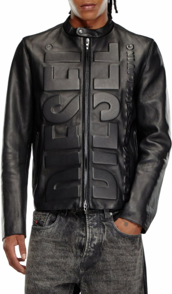 Pánská kožená bunda s vertikálním reliéfem loga Diesel For Successful Living umístěným na přední straně. Rovný střih se stojáčkem u krku a zapínáním na dvoucestný zip doplňují šikmé boční kapsy se zipem a rovný lem v pase. Hladká ovčí useň prémiové kvality zaručuje skvělou prodyšnost, přirozenou hřejivost a pružnost. Dokonale nadčasový a komfortní kousek, který dodá nezaměnitelný styl a jedinečnos...