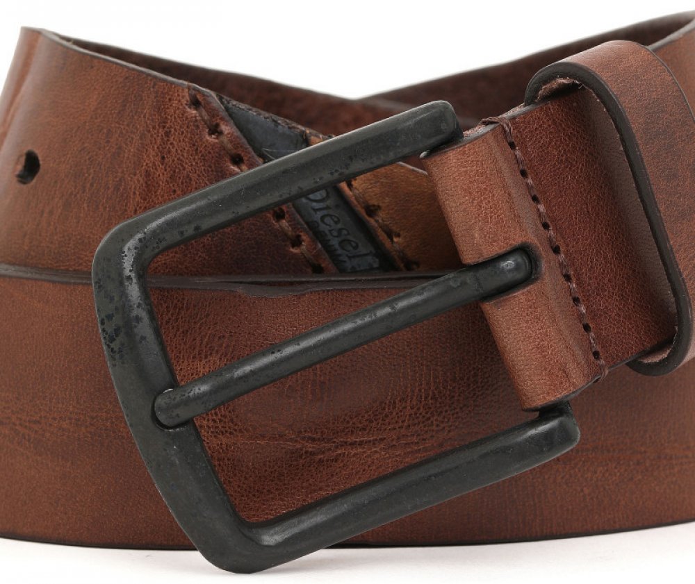 Kožený opasek s ikonickým logem. Tento opasek je vyroben z upravené hovězí kůže se strukturovaným povrchem. Originálně zdoben kontrastním kovovým logem Diesel Industry na konci délky popruhu. Klasická špendlíková přezka dodává nadčasovost. Přezka neobsahuje Nikl.
