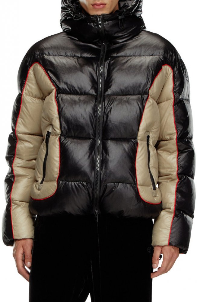 Pánská prošívaná bunda s kapucí rovného střihu s délkou do pasu, dvě boční kapsy. Lesklý vzhled a kontrastní barevná kombinace působí velmi stylově. Materiálové složení je maximálně lehké, hřejivé a odolné. Výplň z dutého vlákna zaručuje nenáročnou údržbu.