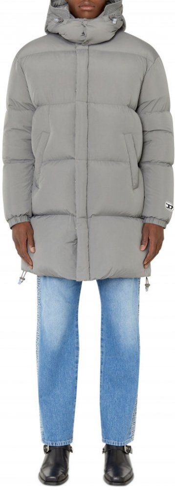 Pánský puffer kabát. Regular volný střih. Tento model s termoizolační podšívkou je vyroben z vodoodpudivého mačkaného nylonu a má speciální úpravu Polygiene ViralOff® aplikovanou na vnější stranu i podšívku. Ošetření redukuje mikroby na povrchu látky o 99 % během dvou hodin. Odepínací kapuce, elastické manžety a lem se stahovací šňůrkou. Zapínání na zip a knoflík. Přední výpustkové kapsy a vnitřní kapsa. Velikost odpovídá běžnému značení, při výběru zvolte svou obvyklou velikost. Model má na sobě velikost L a měří 182 cm.