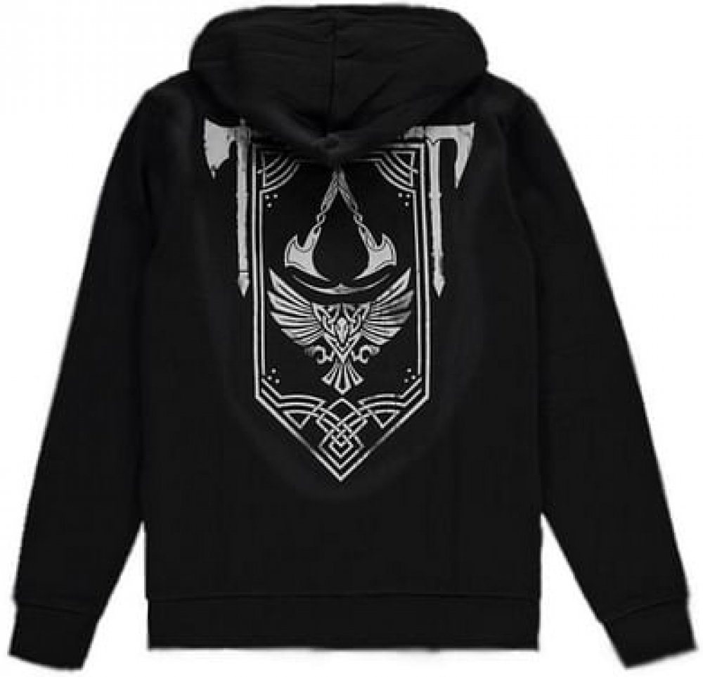 Stylová černá mikina pro hráče a fanoušky vikinských dobrodružství z chladného severu videohry Assassin s Creed Valhalla vás nenechá umrznout! Mikina má herní grafiku přes záda, zapínání na zip, součástí jsou kapuce a kapsy.