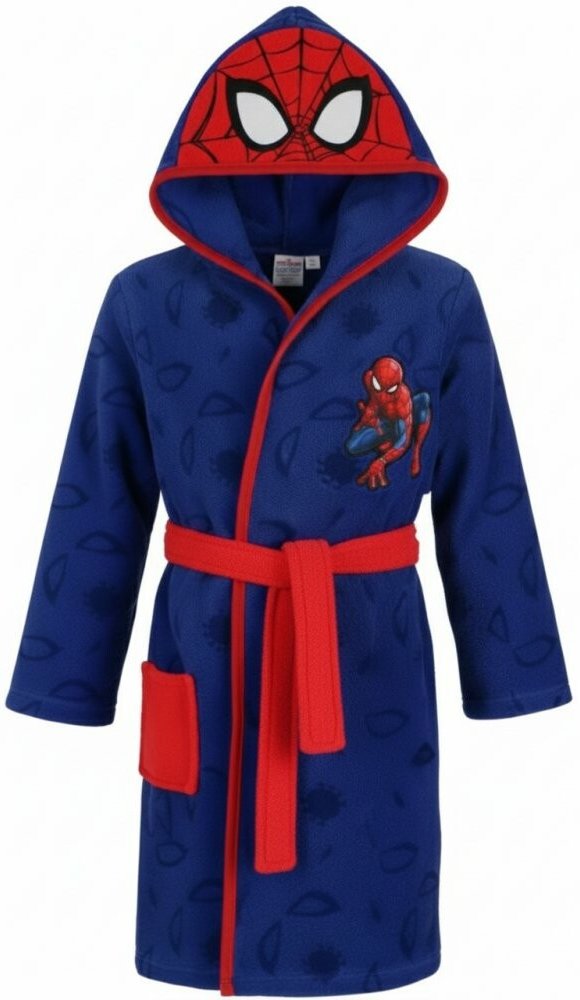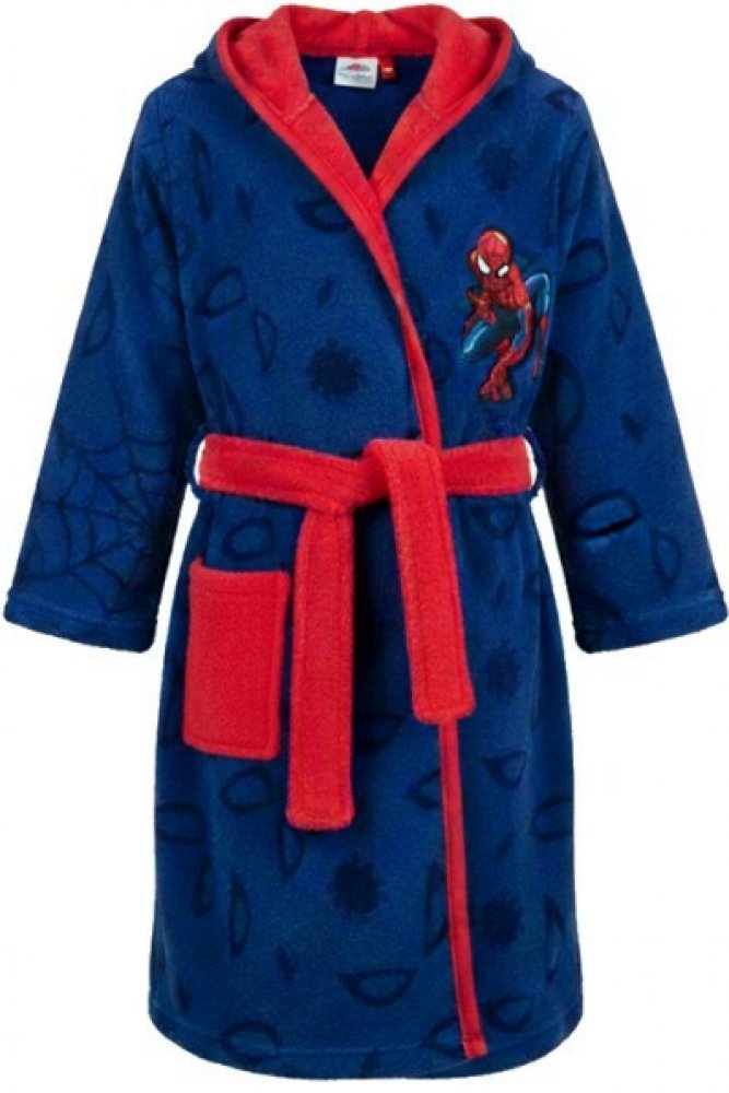 Měkoučký dětský župánek Spider-Man pro všechny malé fanoušky oblíbeného marvelovského superhrdiny. Župánek má kapuci s potiskem masky Spider-Mana, pásek a praktickou kapsu. Vyrobený z hebkého a hřejivého korálového flísu. Velikosti 98/104, 110/116, 122/128 a 134/140.