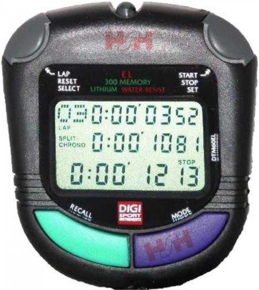 Stopky s velkým třířádkovým displejem, podsvícením a pamětí na 300 kol. Obsahují funkce Timer a Pacer.