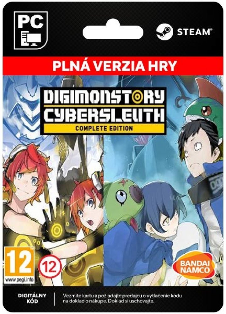 Elektronická licence určená pro platformu Steam Díky strhujícícm příběhům, klasickým tahovým bitvám a spoustě Digimonů, které můžete sbírat, nabízí Digimon Story CyberSleuth: Complete Edition všechno, co se fanouškům líbilona Digimon Story: Cyber Sleuth a DigimonStory: Cyber Sleuth – Hacker’s Memory. Získejte kompletní zážitek díky CompleteEdition, která obsahuje oba tituly v jednom! ZÁHADNÉ UDÁLOSTI • Staňte se kyber detektivem či schopnýmhackerem a řešte ďábelské digi-záhady. ŽIVOUCÍ A PODMANIVÉ SVĚTY • Vydejte se na strhující dobrodružství,ve kterých se stírá hranice mezi skutečnými a digitálními světy. NEKONEČNĚ NÁVYKOVÉ • Hra obsahuje přes 300 Digimonů, kterémůžete sbírat, vychovávat a digi-rozvíjet! SOLIDNÍ HRATELNOST • Sestavte hvězdný tým Digimonů a bojujte s protivníky v klasických tahových bitvách. Návod na aktivaci elektronického klíče pro Steam: 1. Nainstalujte si program Steam – ke stažení zde: https://store.steampowered.com/about/?l=czech a klikněte na „NAINSTALOVAT SLUŽBU STEAM“. 2. Jestliže ve službě Steam nemáte účet, klikněte po spuštění aplikace na „VYTVOŘIT NOVÝ ÚČET a pokračujte dle pokynů. 3. Následně se přihlaste se ke svému účtu ve službě Steam. 4. Na obrazovce Steamu klikněte vlevo dole na tlačítko „+ PŘIDAT HRU“ a zvolte si „AKTIVOVAT PRODUKT VE SLUŽBĚ STEAM“. 5. Postupujte podle pokynů na obrazovce a zadejte aktivační klíč a dokončete aktivaci. 6. Produkt zobrazí na levé straně obrazovky v sekci knihovna her. 7. V případě her můžete začít stahovat hru, kterou budete po stažení moci spustit. 8. V případě dobití peněženky se doplní kredit na účtu.
