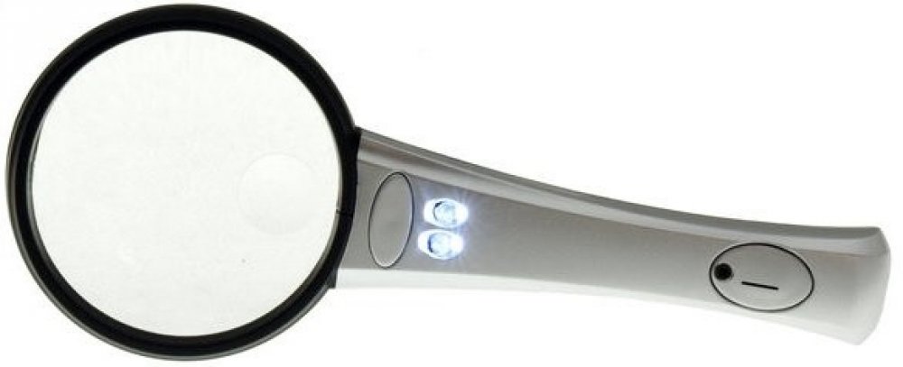 LED osvětlení je umístěno na spodní straně čočky, tedy přímo osvětluje pozorovanou plochu. S lupou můžete číst i v úplné tmě. Baterie jsou součástí balení.