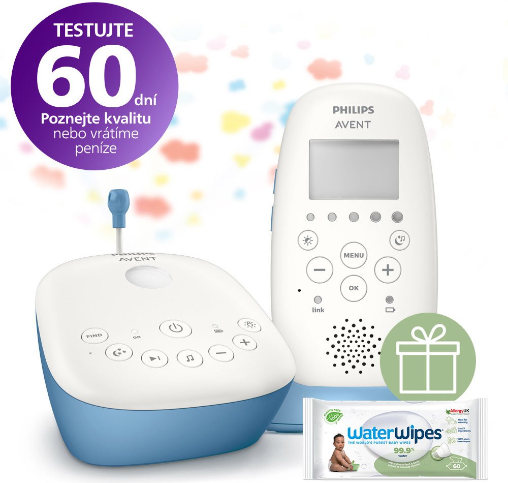 S novou řadou monitorů DECT Philips AVENT můžete v klidu odpočívat s vědomím, že je vaše dítě spokojené, i když s ním nejste v místnosti. Nová řada monitorů DECT poskytuje množství neocenitelných vlastností. Digitální technologie vás upozorní i na nejtišší šepot a umožní vám uklidnit vaše dítě díky spojení s garancí nulového rušení v domě a v jeho okolí.