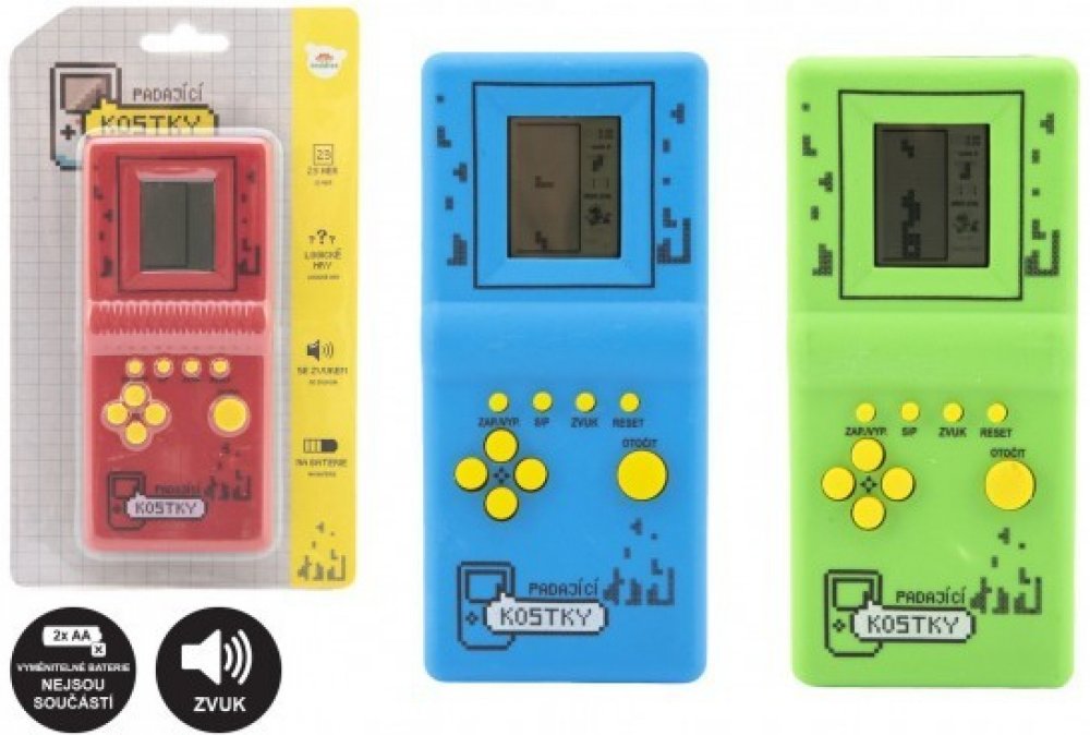 Digitální hra Padající kostky hlavolam plast 14x7cm na baterie se zvukem v krabičce 7,5x14,5x2,5cm