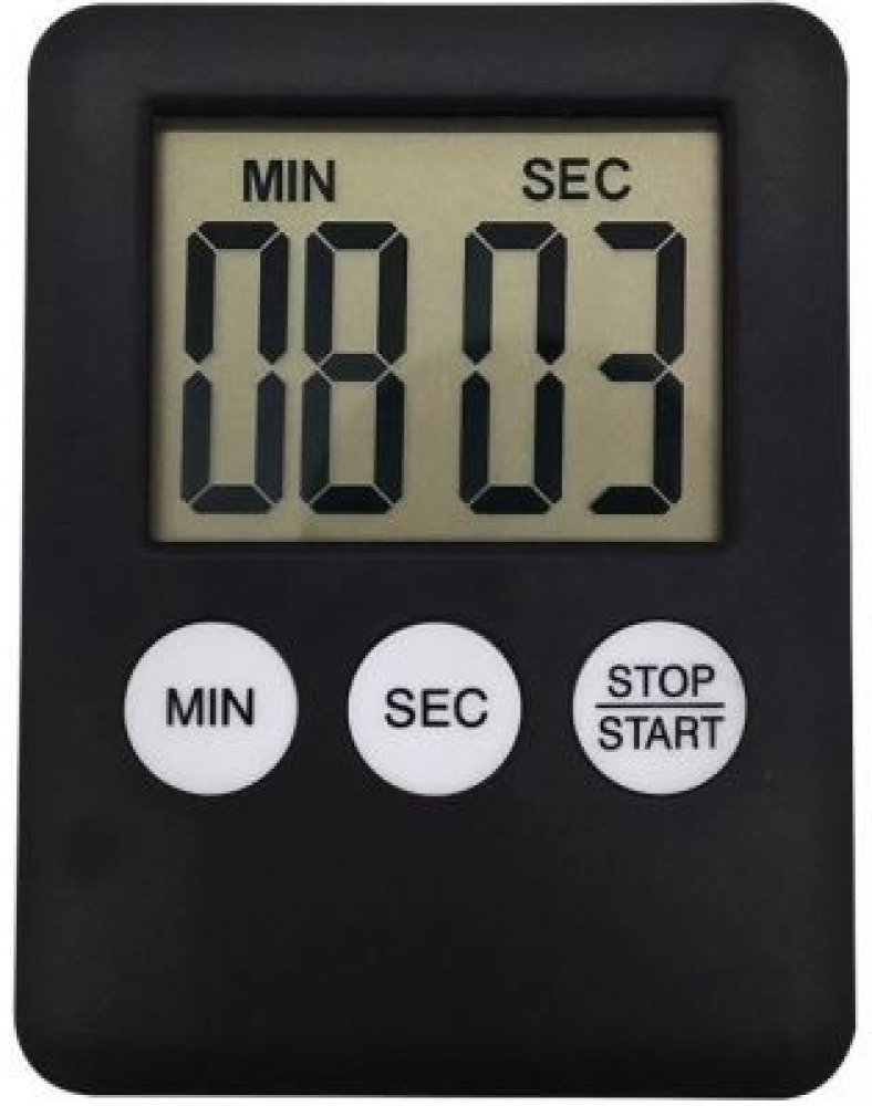 Elektronický kuchyňský časovač s magnetem! Určitě to usnadňuje přípravu jídel v kuchyni. Namontovaný na magnetu můžete pohodlně připnout k lednici! Velký a jasný LCD displej usnadňuje čtení zbývajícího času. Zařízení má paměť poslední nastavené hodnoty a zvukový signál uplynulého času. Časovač je vyroben z měkkého, pogumovaného plastu. Napájení: 1x baterie LR1130 (součástí balení) Materiál: plast Upevnění pomocí magnetu Velký a jasný LCD displej Signalizace plynutí času (zvuk) Paměť poslední nastavené hodnoty Rozměry: 7,0 cm x 5,0 cm x 1,0 cm Černá barva