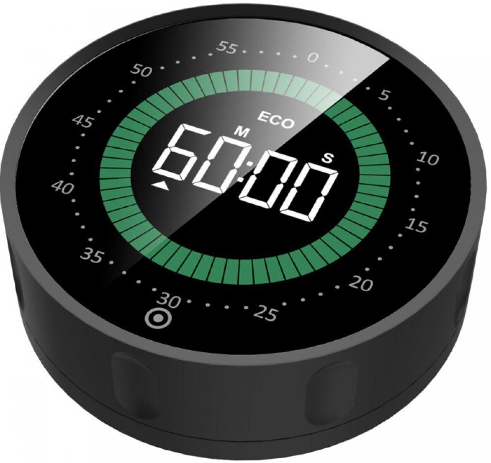 Jednoduchá digitální minutka JVD s velkým a přehledným displejem a magnety na zadní straně přístroje.