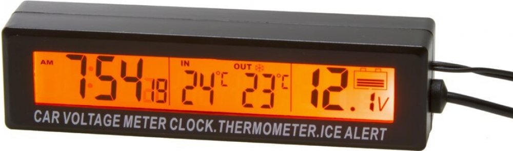 Digitální vnitřní/venkovní teploměr, hodiny a voltmetr - 35936