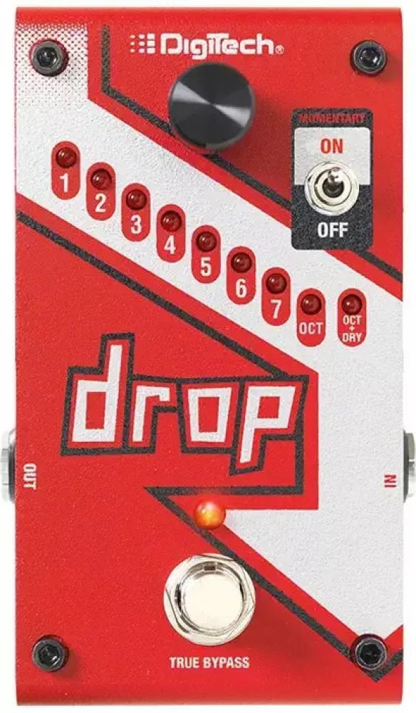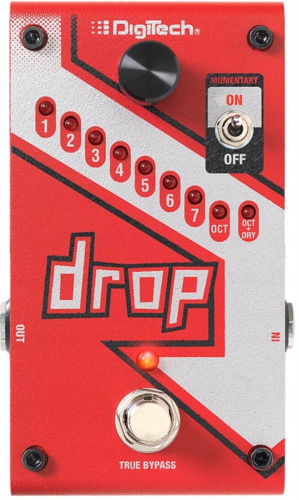 K dispozici je celkem 9 nastavení drop-tuningu – od jednoho půltónu postupně až po celou oktávu a dále včetně módu Octave+Dry, jenž k signálu sníženému o jednu oktávu přimichává i původní nezkreslený signál.