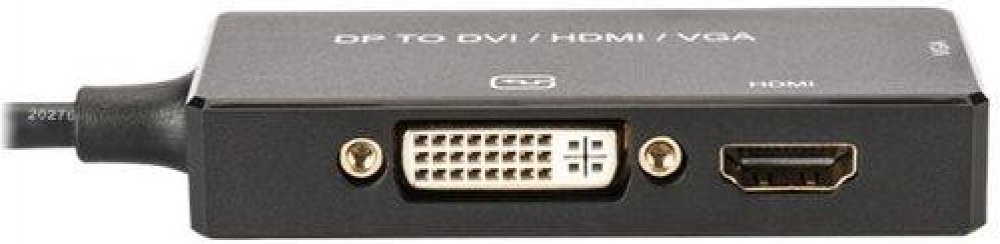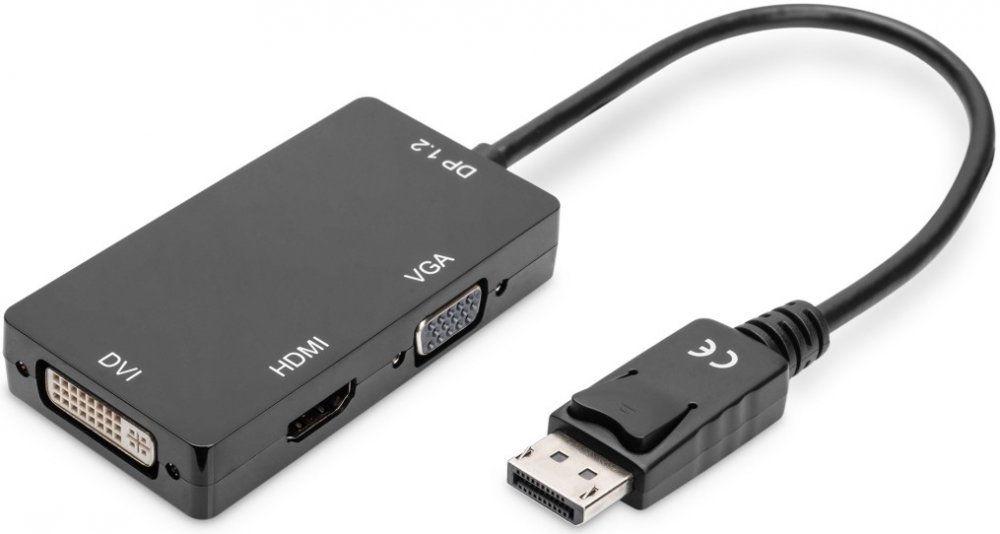 Adaptér DisplayPort 1.2 na HDMI / DVI / VGApřevádí signály DisplayPort na signály HDMI, DVI a VGA Instalace Plug and Play není třeba kupovat 3 samostatné adaptéry není třeba žádný napájecí zdroj kompaktní a lehké provedení Technické údaje: Vstup: 1x konektor DisplayPort Výstup: 1x HDMI-A a 1x DVI-D a 1x VGA spojky Rychlost přenosu dat HDMI 1.4 až 3 Gbit/s podporuje 4K/2K s frekvencí 30 Hz - Rozhraní DVI a VGA podporují Full HD 1080P@60Hz Rozlišení VGA až WUXGA 1920x1200 dpi (snížená hluchota) Zamykání: zaklapávací montáž AWG 28/30 Povrch kontaktů: pozlacený Krytka: zalitá Materiál jádra: měď trojité stínění Standard DisplayPort: DisplayPort 1.2 až 5,4Gbit/s Standard HDTV: Ultra HD 4K Typické aplikace: - k připojení počítače nebo notebooku s rozhraním DisplayPort k libovolnému displeji podporujícímu HDMI, VGA nebo DVI Kabel převodníku Displayport