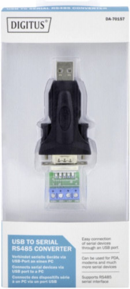 Převodník USB 2.0 na sériový port, RS485 vč. Kabel USB A 80cm USB A M / USB A F Připojuje sériová zařízení přes port USB k počítači Umožňuje přenos dat mezi PC a sériovými zařízeními (ovládání stroje, modemy, senzory atd.) Podporuje rozhraní RS-485 Zahrnuje prodlužovací kabel USB Technické údaje Snadné připojení sériových zařízení přes port USB Vyhovuje specifikacím USB 2.0 Podporuje sériové rozhr...