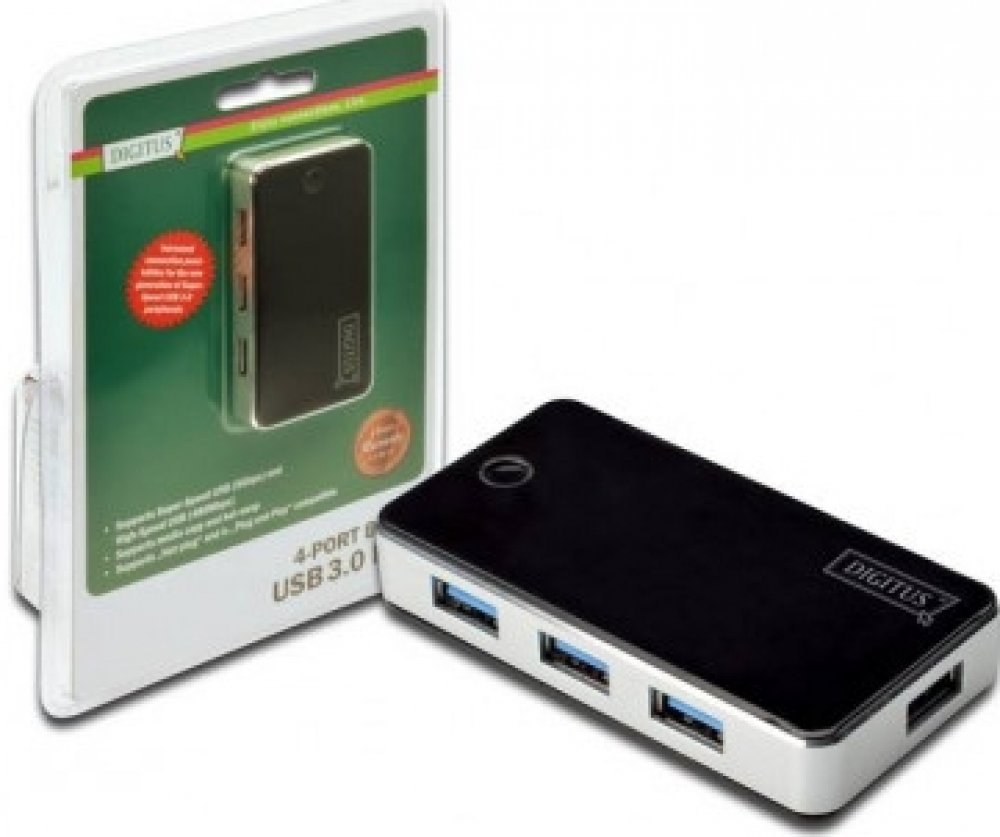 DIGITUS USB 3.0, 4-ports HUB, 4xUSB A/F,1xUSB A/F, Cable AM/AM 1.2M incl. Power Supply 5V 4A
