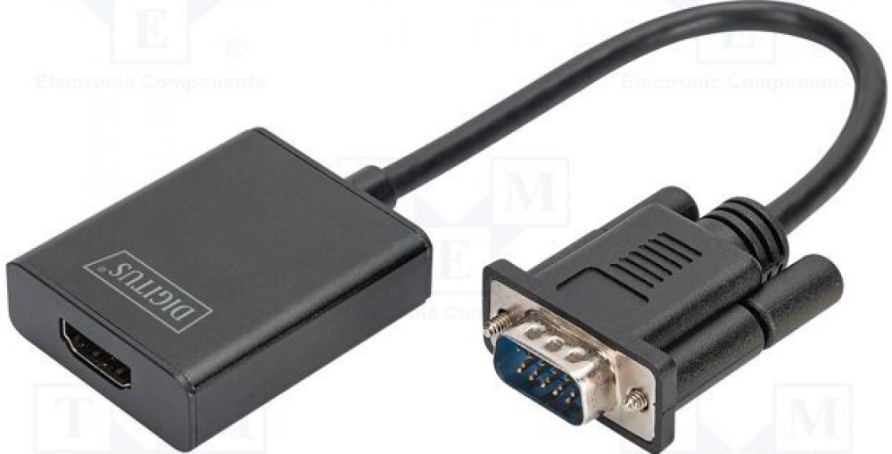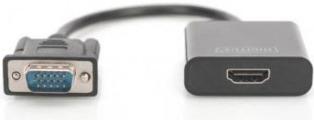 Převodník VGA na HDMI + zvuk (3,5 mm) Full HD (1080p), kabelový typ (15 cm), černý Převádí analogový signál VGA na digitální signál HDMI Převádí video a audio signály z VGA na HDMI Připojte starší zařízení s portem VGA k televizorům, monitorům nebo projektorům pomocí portu HDMI Další přenos zvuku (3,5 mm jack) Napájení přes USB Není nutná instalace softwaru ani ovladačů Převodník Digitus VGA na HD...
