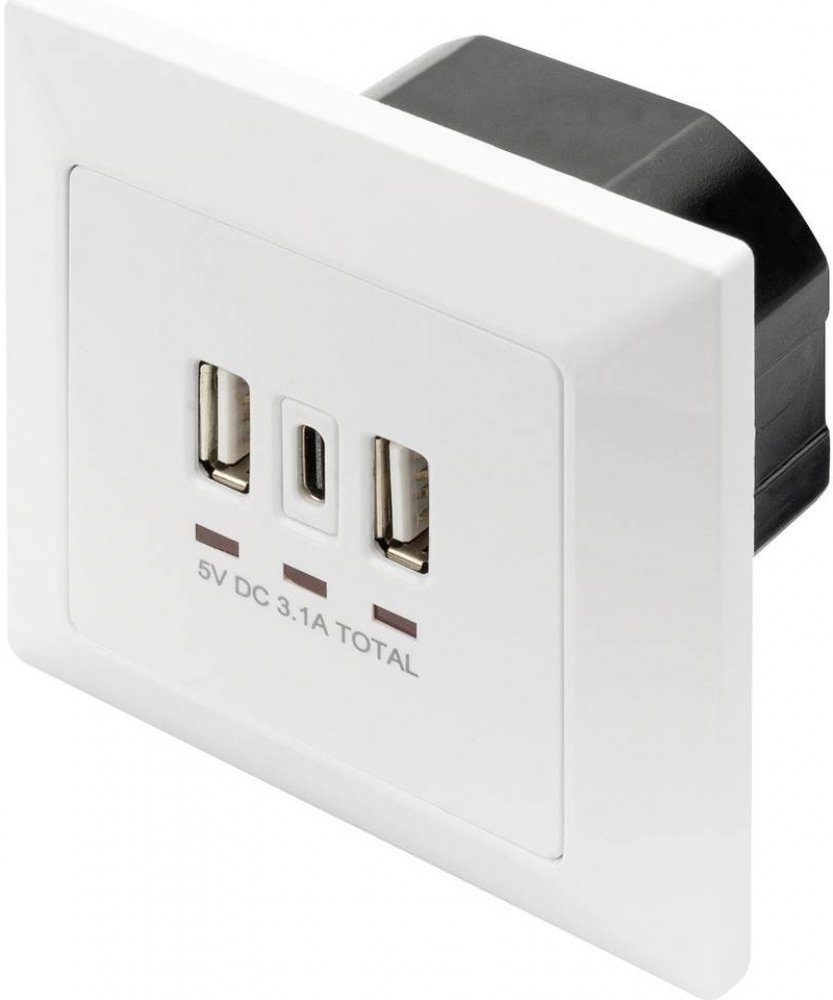 S Digitus USB nabíjecí zásuvkou můžete současně nabíjet až 3 smartphonů nebo tabletů. Nabijte jedno zařízení USB-C s výkonem až 14 W (5 v