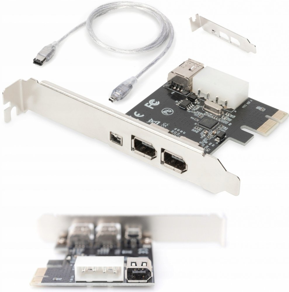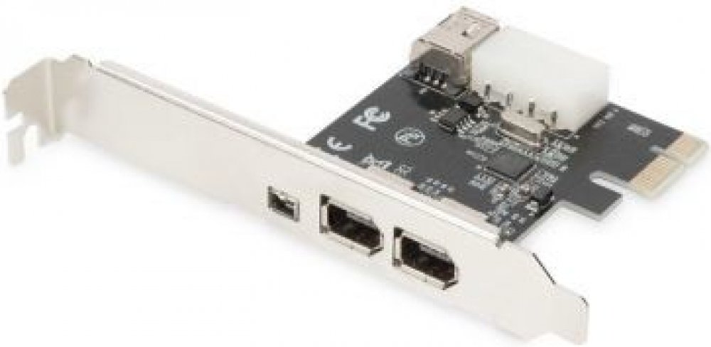 DIGITUS PCI Express Card, Firewire 1394a (2+1 porty)Karta je do klasického slotu PCI Express. Karta přidá 2+1 port FireWire..- Konektory na výstupu: 2x externí 1394a + 1x externí 1394mini FireWire konektor- Přenosová ryhlost 100 / 200 / 400 Mbps- Podpora zapojování zařízení za chodu- Instalace je možná do slotu PCI Express jakékoliv délky- Systémy: Windows 11/10 / 8/ 7 / Vista / XP.