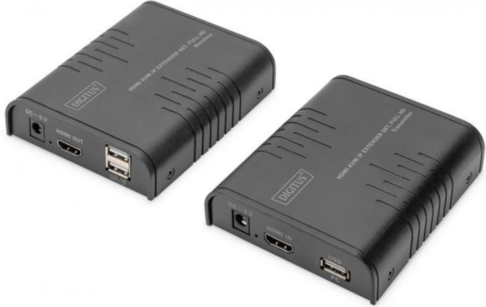 Digitus DS-55529. Model: Vysílač a přijímač, Technologie propojení: Kabel, Maximální přenosová vzdálenost: 120 m. Typ video portu vysílače: HDMI, Typ lokálního video portu vysílače: HDMI, Typ lokálního portu pro klávesnici/myš vysílače: USB. Typ lokálního video portu přijímače: HDMI, Typ lokálního portu pro klávesnici/myš přijímače: USB. Přenosová rychlost USB: 480 Mbit/s. Vstupní proud: 1 A, Maximální spotřeba přijímače: 3,5 W, DC napětí: 5 V