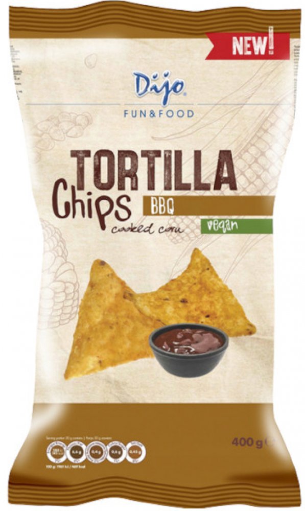 Tortilla chips (s příchutí barbecue) jsou smažené, křupavé, kukuřičné lupínky, které jsou určené přímo ke konzumaci, nebo jsou vhodné na zapékání se strouhaným sýrem - NACHOS. Nejčastěji se však podávají v misce spolu s omáčkou. Díky své pikantní chuti jsou ideální pochoutkou na posezení u piva či vína.
