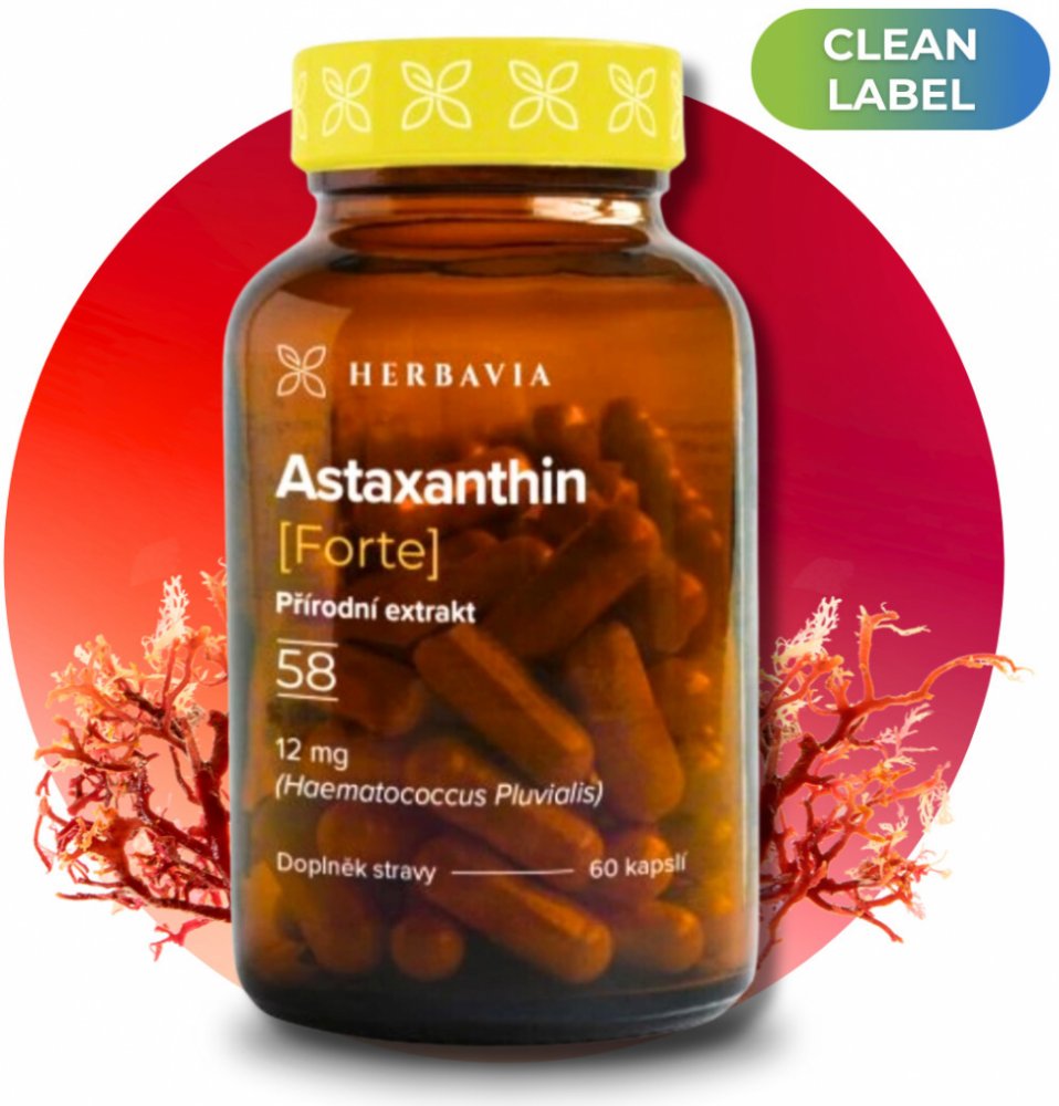 Složení 1 kapsle: extrakt řasy Haematococcus pluvialis (obsahuje 12 mg astaxanthinu), extra panenský olivový olej, vitamín E 10 IU (9,2 mg*) (přírodní d-alfa-tokoferol, ze slunečnicového oleje) (*77 % referenční hodnoty příjmu).