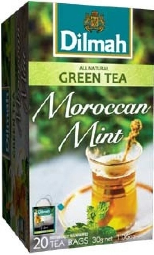 Kombinace jemného zeleného čaje s lístky máty. Má výrazné osviežujúcea povzbuzující účinky. Nedoporučuje se přidávat mléko ani cukr. Čaj Dilmah Moroccan Mint lze přisladit medem.