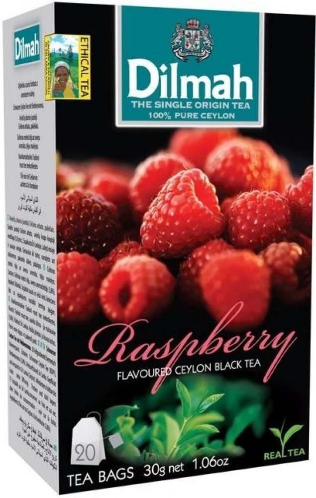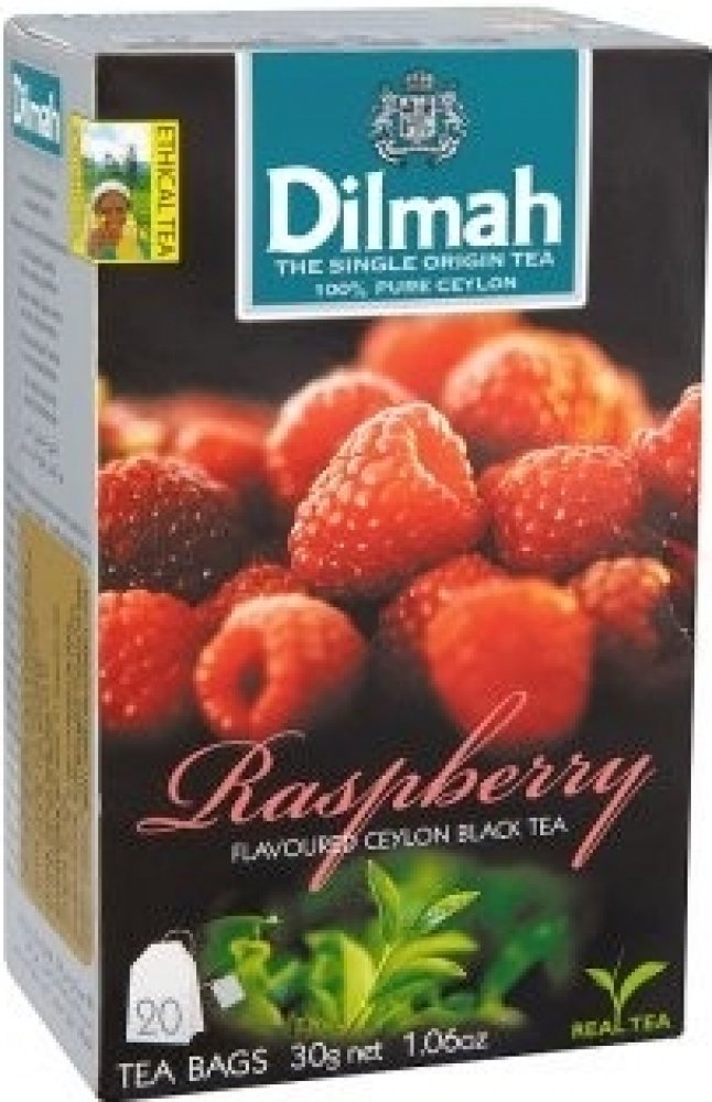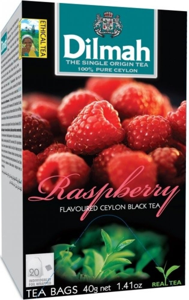 Čaj černý malina 20x2g DILMAH, jednodruhový (z jedné země původu), 100% přírodní, pravý cejlonský čaj. Čaje Dilmah jsou baleny přímo na místě během několika dní po ručním sběru čerstvých čajových lístků z našich čajových plantáží, aby si zachovaly čerstvost a vůni. Takový čaj má bohatý obsah blahodárných antioxidantů, podporujících zdravý životní styl. Dilmah je rodinná společnost, založená na morálních principech, díky nimž může svým zákazníkům nabízet ten nejlepší čaj na světě a pěstitelům spravedlivou odměnu.