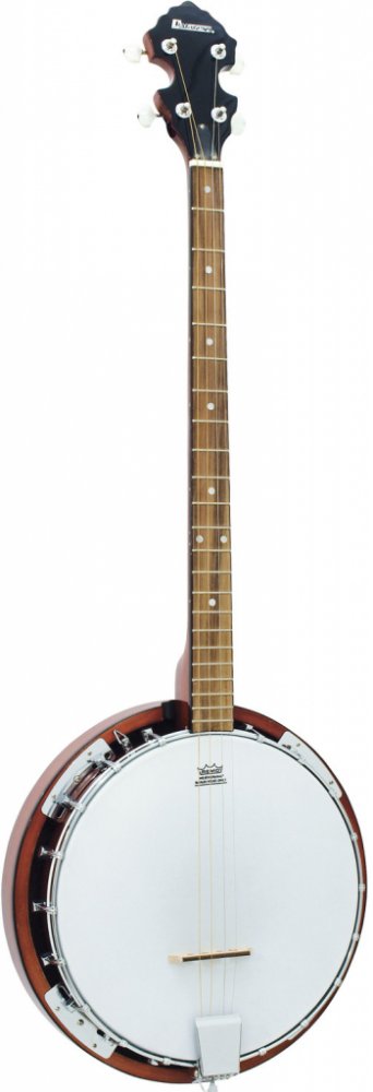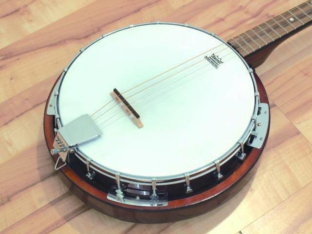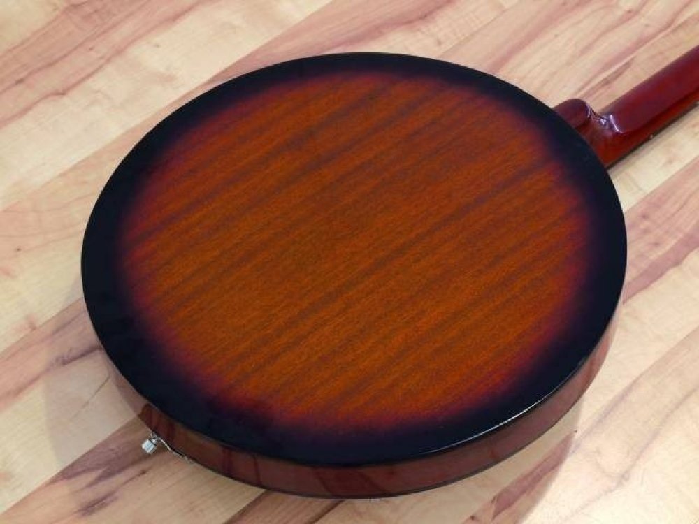 Čtyřstrunné banjo. Tělo nato, buben nato, 24 háčků (plochý typ), blána Remo 11" bílá pískovaná, lepený krk, menzura 574 mm (22,6"), hmatník blackwood, 19 pražců, perleťové značky poloh, kobylka javor/eben, struník poniklovaná mosaz, otevřená mechanika s perleťovými knoflíky, ladění C-G-H-D. Barva sunburst lesklá.