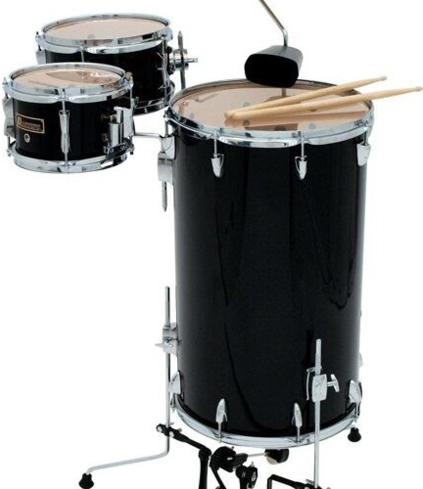 Sada bicích CDS Cocktail 3-dílná z javorové překližky. Obsahuje: FT 15"x25" (8 šroubů) + TT 10"x5" (8 šroubů) + dřevěný SD 8"x5,5" (8 šroubů) + šlapka + 2 činely s držákem + cowbell. Barva černá.