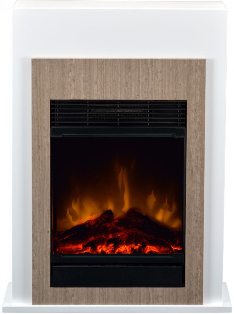Moderní elektrický krb s efektem plamenů Opti-Flame ve stylovém bílém pouzdře s dřevěnou povrchovou úpravou v barvě betonu. Efekt žhnoucího ohniště s plameny technologie LED. Vybaveno topením, ventilátorem, man. termostatem a dálkovým ovládáním. Efekt plamene nezávislý na režimu topení. Použití technologie LED výrazně snižuje náklady.